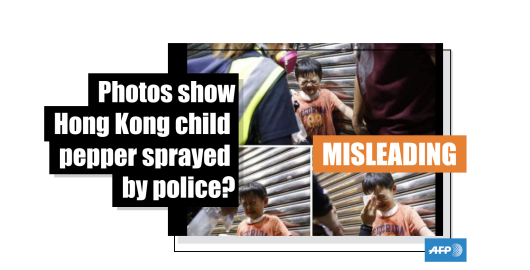 Image Published on 18/11/2019 The child was crying after being exposed to tear gas in Hong Kong -- not deliberately pepper sprayed by police