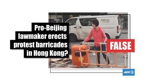 Image Published on 19/11/2019 This photo shows a Hong Kong politician removing barricades from the streets