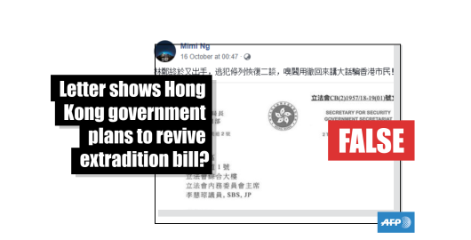 Image Published on 24/10/2019 This is a Hong Kong government letter which stated the extradition bill would be given a second reading before it was formally withdrawn