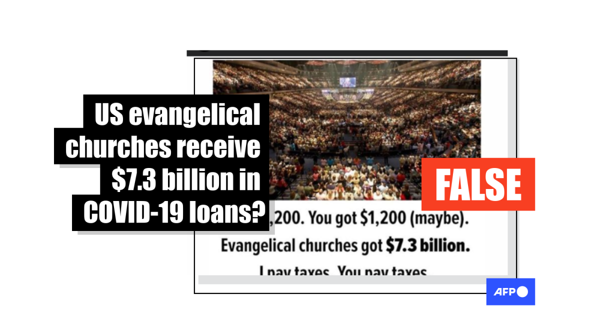 This data set accompanying the SBA report shows that a wide variety of religious organisations received loans under the scheme, not just evangelical churches as the false posts claim.