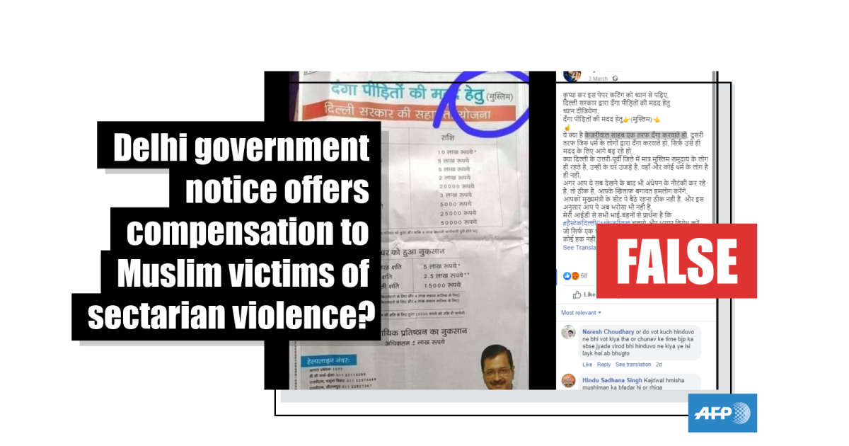 On its official website, the Delhi government published this notice with some information about monetary compensation for the victims of the recent sectarian violence in the city.