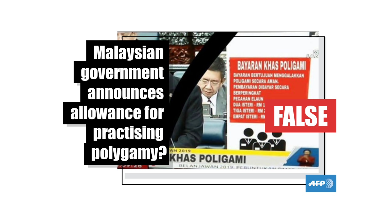 The Malaysian government did not announce a polygamy allowance in its 2019 budget; this image has been doctored from a government broadcast