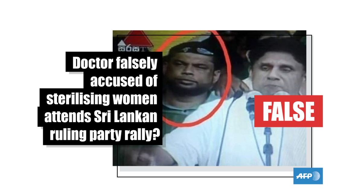 AFP also contacted the office of State Minister of Transport and Civil Aviation, Ashok Abeysinghe, who was pictured standing next to MP Rahuman at the rally.