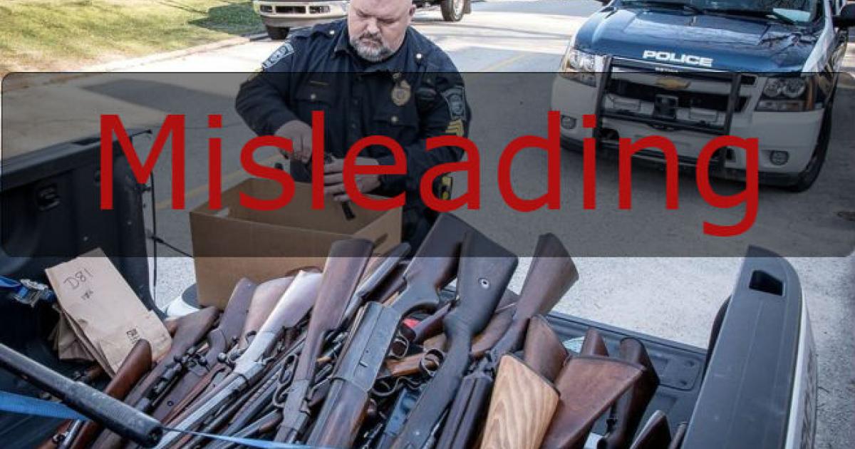 The 98 firearms were seized in April 2017 from his home because they were improperly stored, as the police report from the incident states. Articles reporting on the event use the same photo and explained that the guns were seized following the execution of a search warrant.