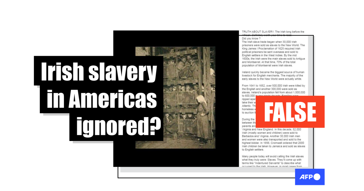 Similar claims have been made across several posts spreading misinformation about slavery and Irish indentured servants, as fact-checked by AFP.