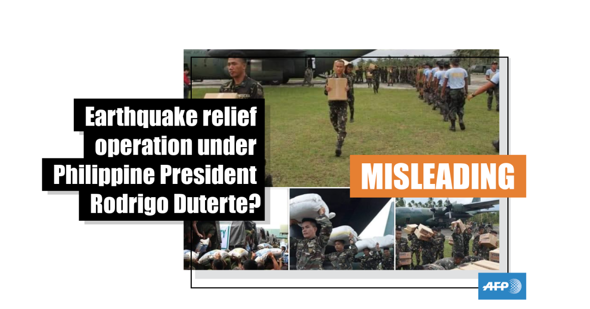 The second photo in the misleading Facebook post does show government relief efforts while Duterte was in office, but not in the aftermath of the Mindanao earthquakes. The image was taken after Typhoon Mangkhut hit the Philippines in September 2018. A reverse image search on Google found it was published in this report by the state-run Philippine Information Agency.