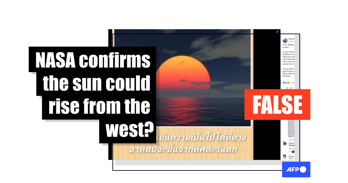 Contacted by AFP, NASA said the claim about the sun rising from the west is “false”.