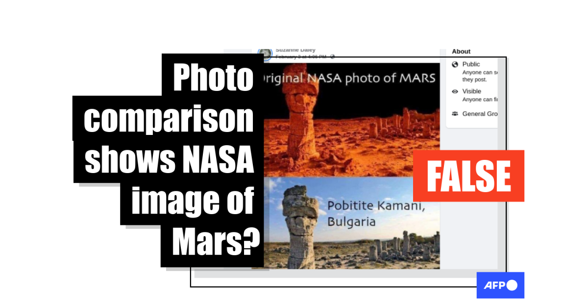 NASA told AFP in a February 6 email the top image in the purported comparison “is not a NASA photo of Mars”. The image is also not listed on NASA’s publicly available Mars Media Library as seen here.
