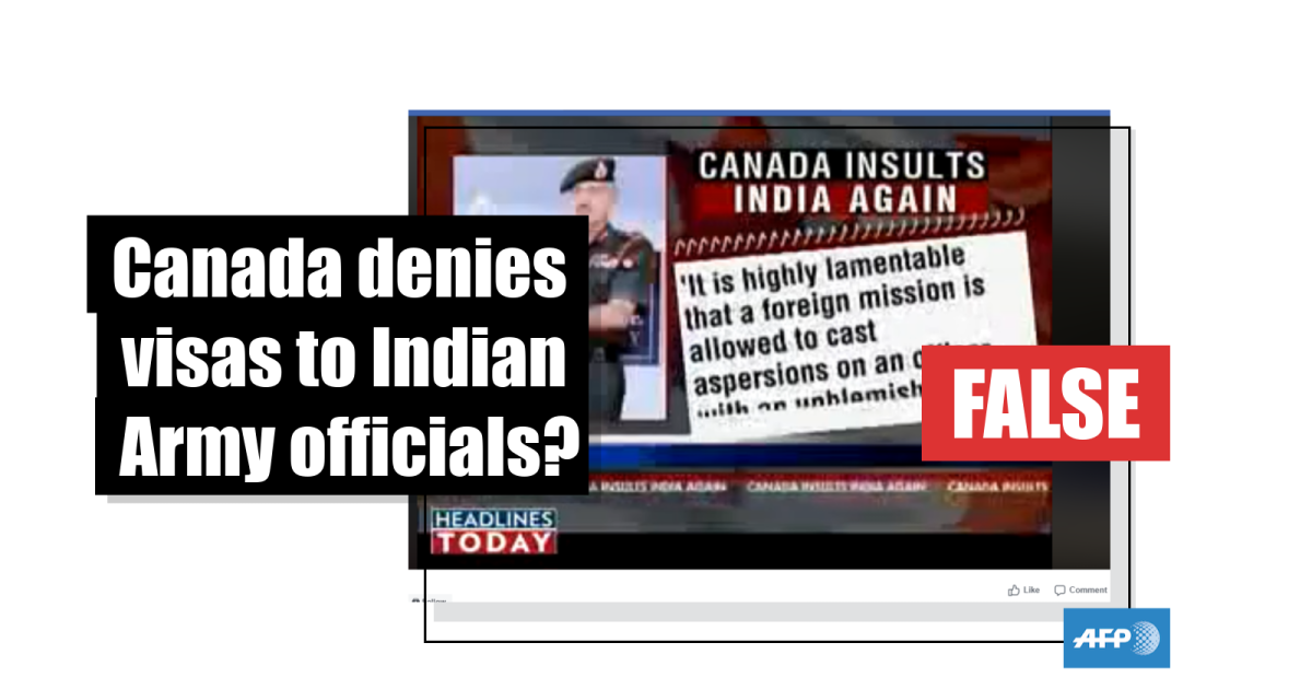 The Facebook post's caption says: “Rogue Indian Army Exposed. Canada refuses visa for Indian Army Generals and Brigadiers who served as intelligence officers for their part in #Kashmir: thank you @JustinTrudeau for your brave stance.”