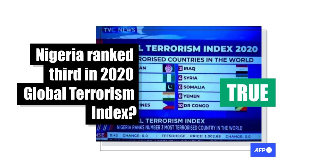 In September 2020, AFP Fact Check debunked a misleading graphic published by Nigerian television channel TVC News showing Nigeria third on a list of the 10 most terrorised countries globally.