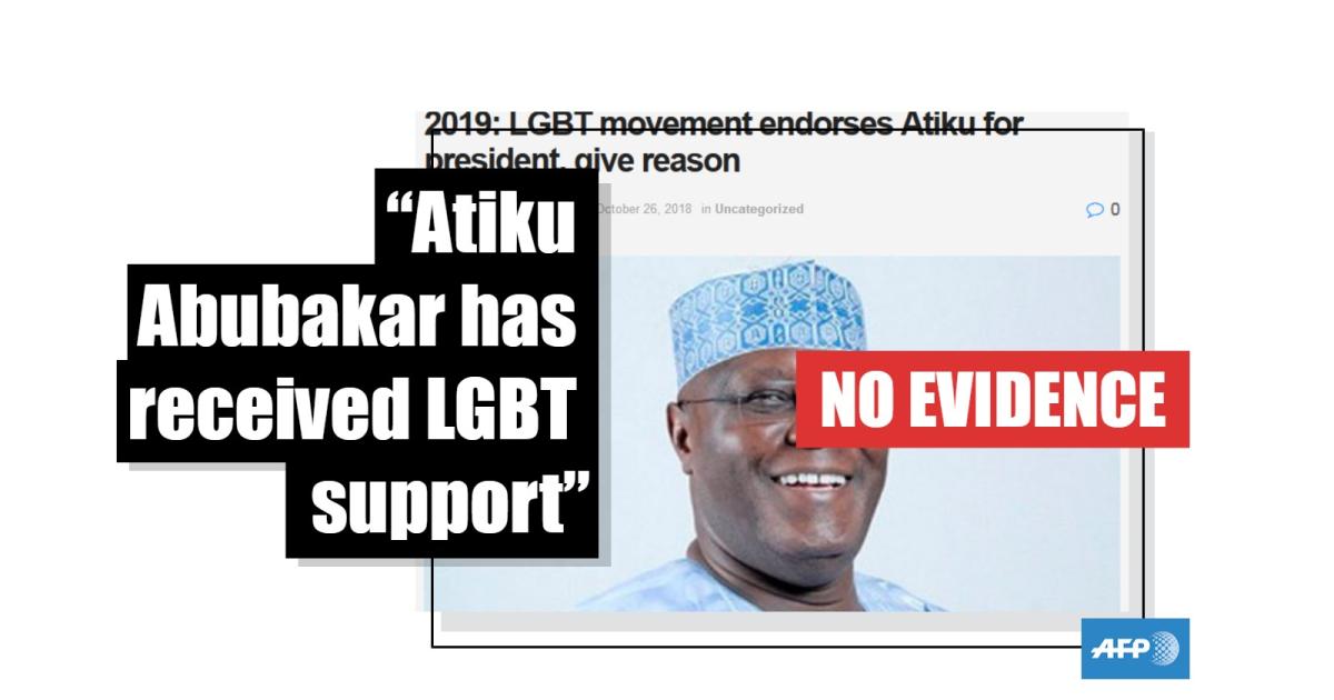 In the days afterwards, scores of pictures were posted on Facebook, with hundreds of shares, featuring the statement “The Lesbian, Gay, Bisexual, and Transgender (LGBT) Rights Movement in Nigeria endorses Atiku for president.”