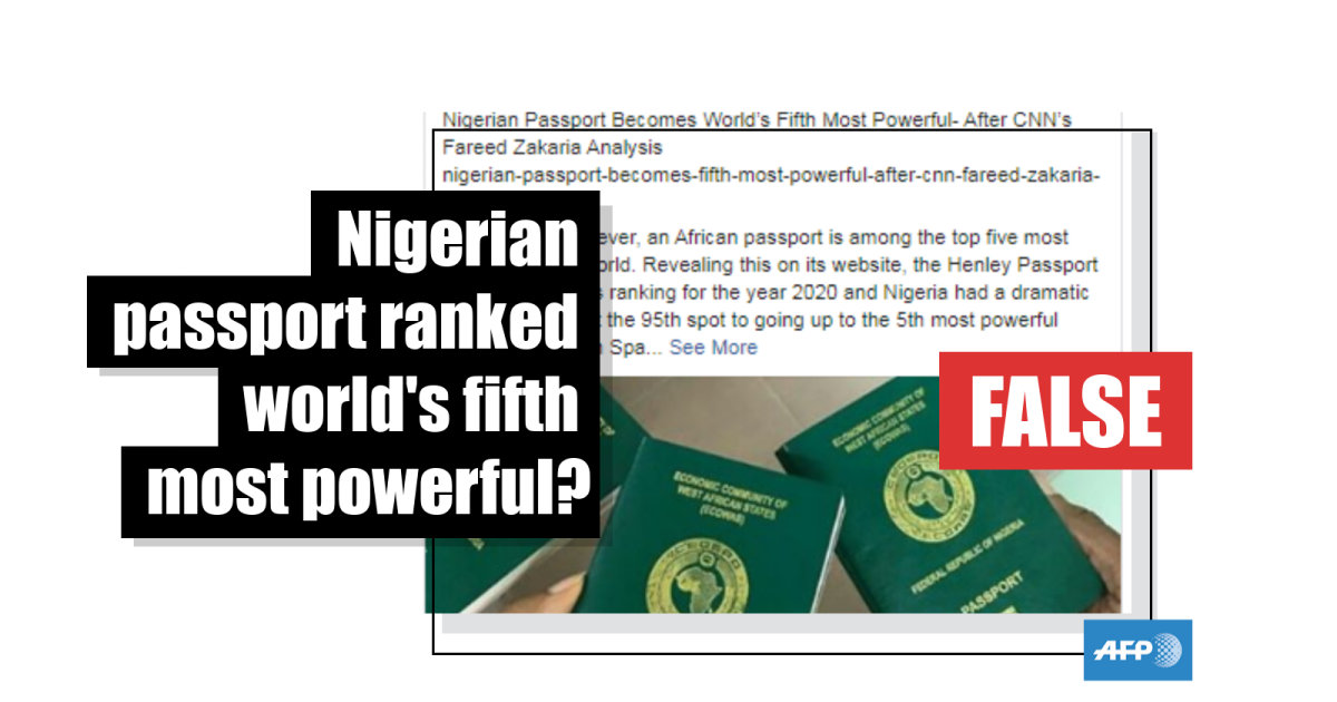 “I can confirm that Nigeria remains in 95th place and there has been no significant movement up as described in those posts,” Henley & Partners spokesman Paddy Blewer told AFP in an email response.