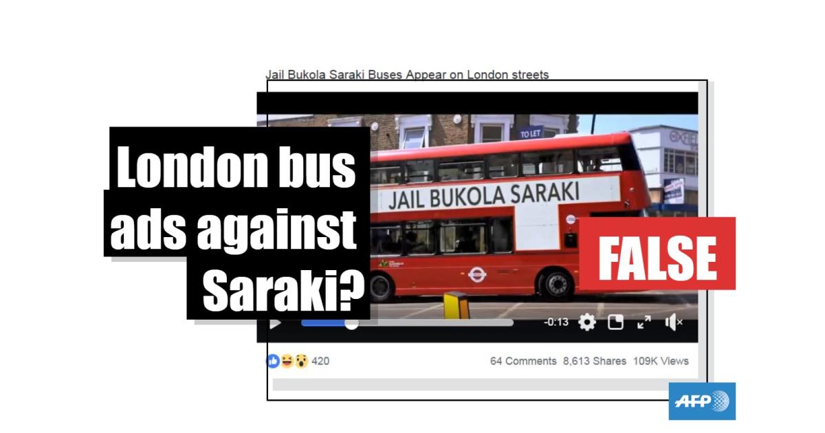 No, adverts on London buses are not calling for Nigeria’s Bukola Saraki to be jailed