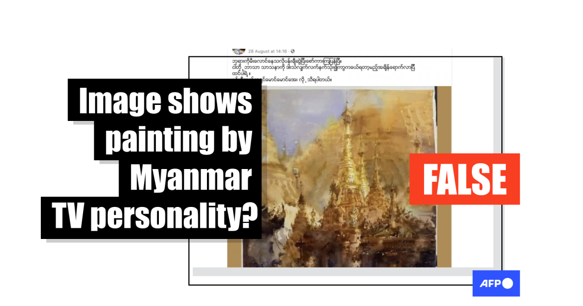 Aye also addressed the false claim in a Facebook post, writing that “this is the artwork of Myanmar famous artist Myint Naing, who is recognised as the king of watercolour painting in Myanmar.”