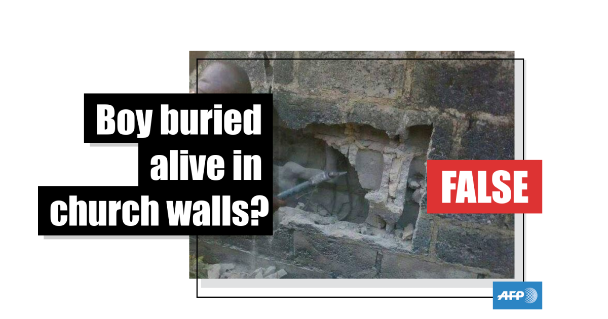 The pictures, posted by a Facebook page named “Ghana in Africa”, have been shared more than 6,700 times (we’ve archived the post here). The post claims that the boy “was placed behind the walls alive, buried alive behind the walls, used as a foundation for a church building”.
