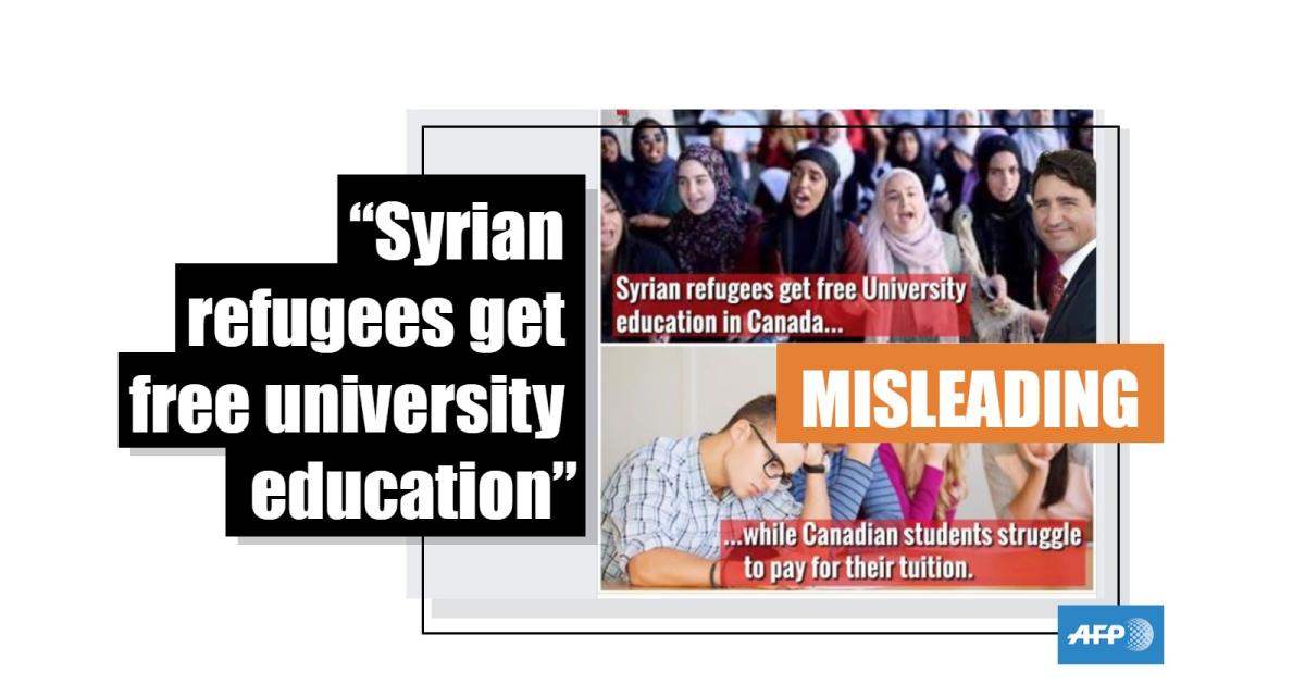 “Syrian refugees get free University education in Canada...while Canadian students struggle to pay for their tuition,” according to a Facebook post causing outrage in Canadian Facebook groups.