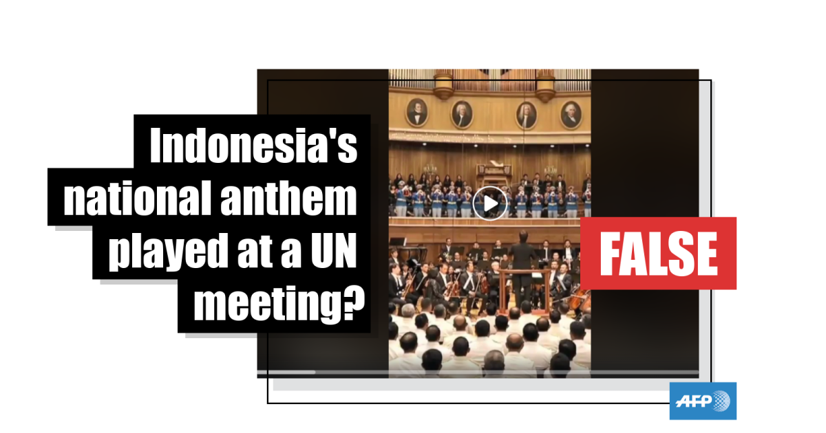 No, this clip does not show Indonesia’s national anthem being played at a UN meeting
