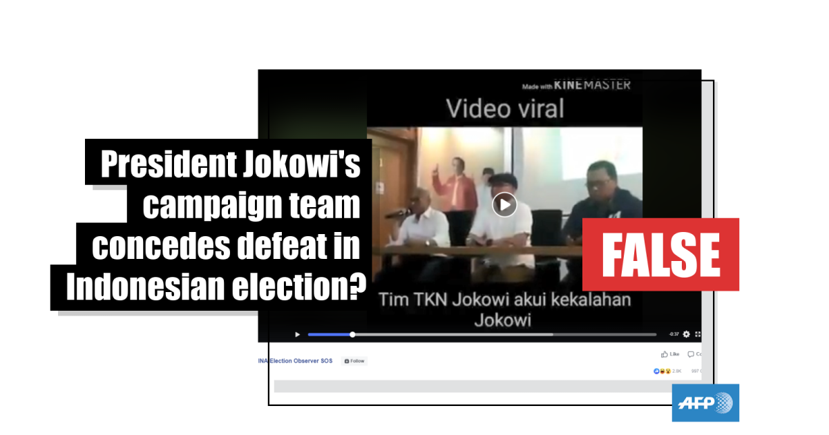 No, this clip does not show President Joko Widodo’s re-election campaign team conceding defeat in Indonesia’s 2019 polls