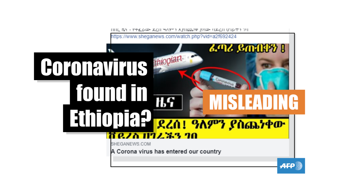 Another misleading post (archived here) claimed that the virus had hit the capital: “Breaking corona virus victims in addis [sic]”. The text in Amharic, meanwhile, referred only to “suspected” cases.
