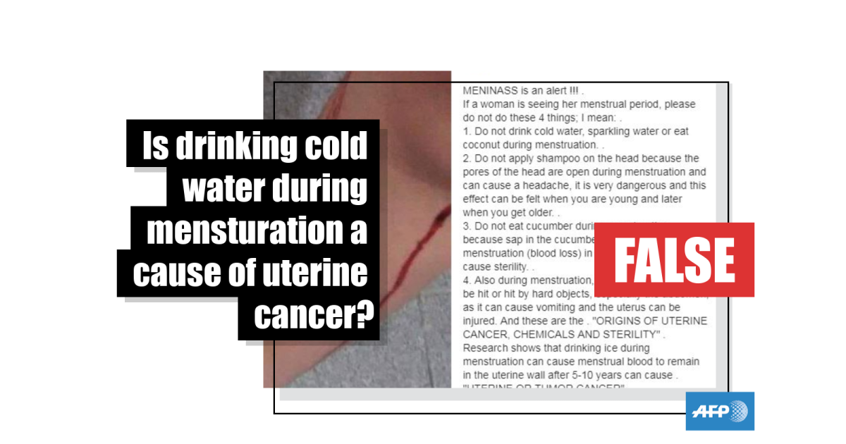 Research proves, drinking ice during menstruation can cause menstrual blood remaining in the uterine wall, after 5-10 years can cause "UTERUS CANCER OR TUMOR," the viral post claims.