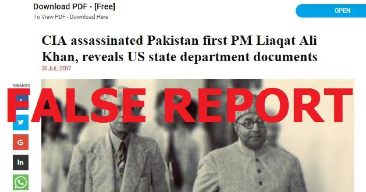 Similar claims of purported declassified US State Department records showing the CIA killed Liaquat Ali Khan have been circulating online for more than a decade.