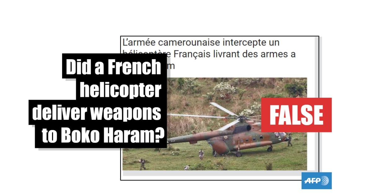 An article with the headline “Cameroon’s army intercepts a French helicopter delivering weapons to Boko Haram” published on the Africa24.info website on December 31, 2015 has been shared online nearly 10,000 times, according to the social media monitoring platform CrowdTangle.