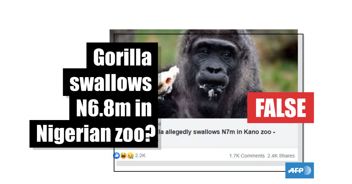 No, a gorilla did not swallow N6.8m in a Nigerian zoo. Here’s how the false story got out