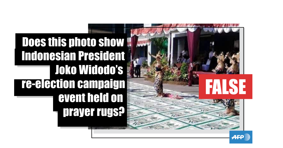 No, this image does not show Indonesian President Joko Widodo’s re-election campaign event held on prayer rugs