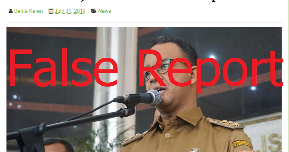 Indonesian website kataku.pw published an article on July 31, 2018, with a headline that translates to: “ASN Commission officially declares Anies Baswedan guilty and Anies will be removed from his position.”