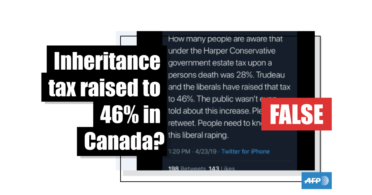 However, the information is false. Inheritance tax rates have not been changed by the Liberal government as there is no inheritance tax in Canada.