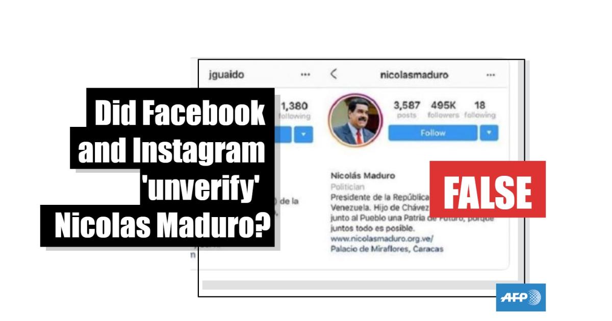 No, Instagram and Facebook did not remove the verification of Nicolas Maduro’s accounts