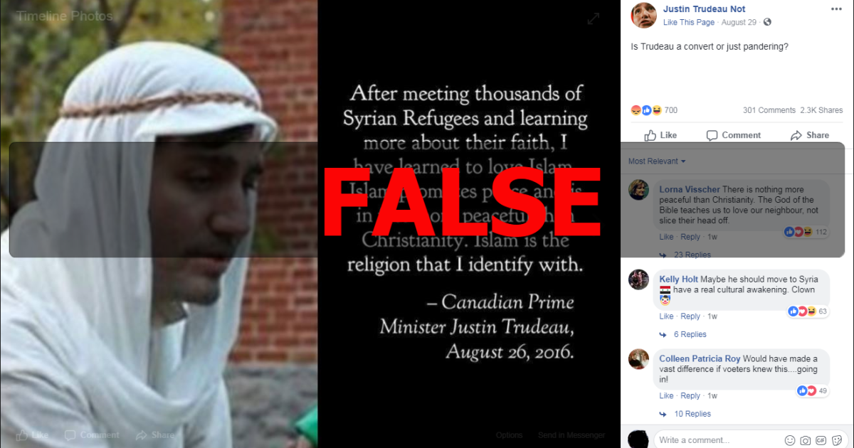 No, Justin Trudeau did not convert to Islam