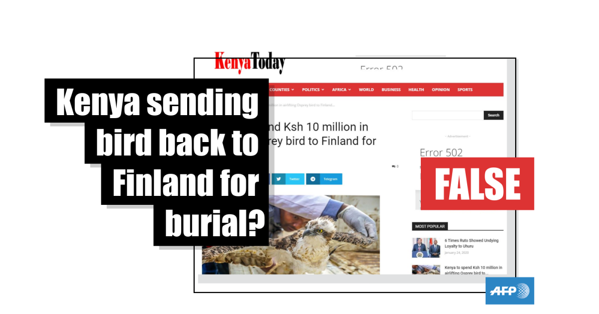 No, Kenyan authorities are not flying an Osprey bird carcass back to Finland for burial