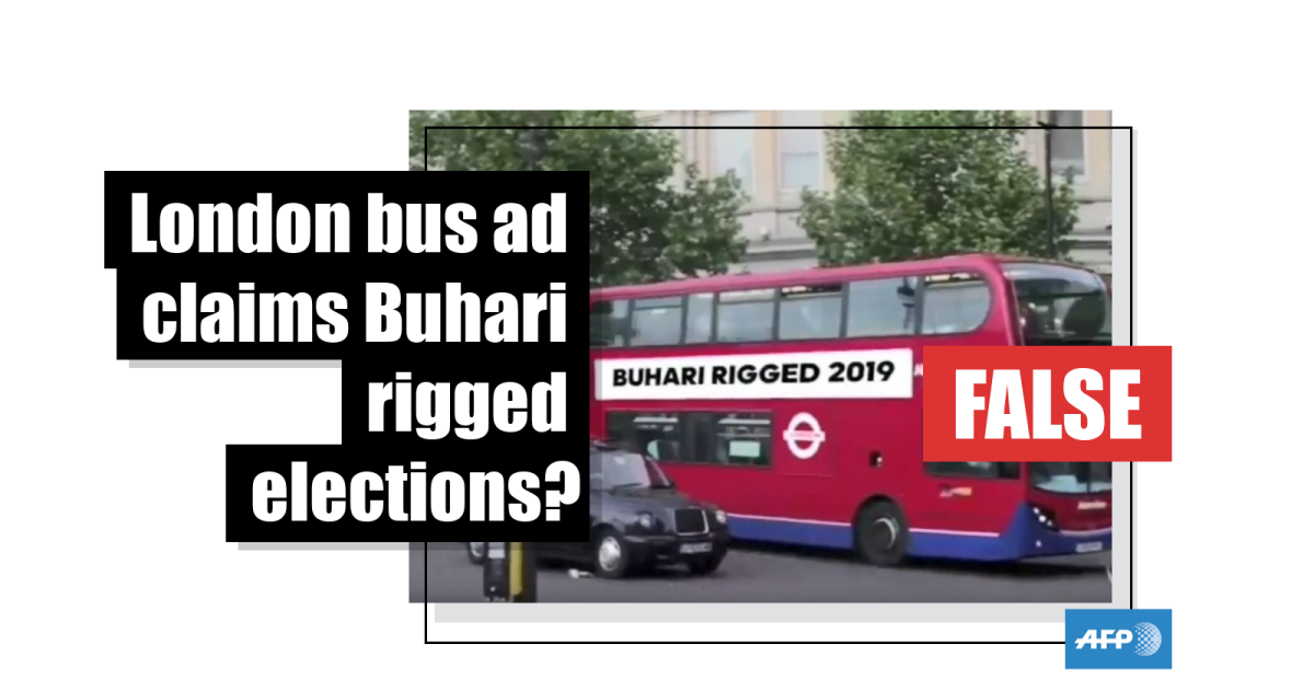 The video is not new to AFP Fact Check -- the same footage was also doctored to suggest that London buses were carrying adverts calling for the imprisonment of Nigeria’s former senate president Bukola Saraki.