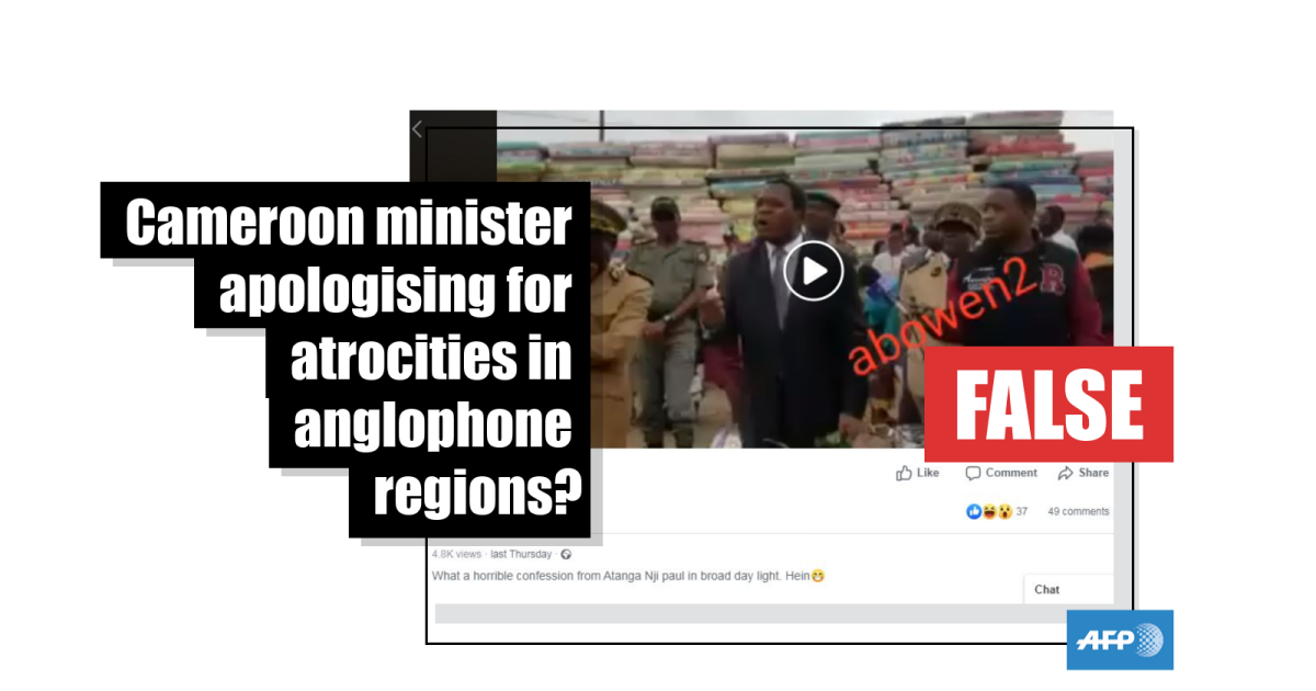 Various Facebook users shared the clip in posts that suggested it truly showed Atanga Nji, Cameroon’s minister for territorial administration, making an apology.