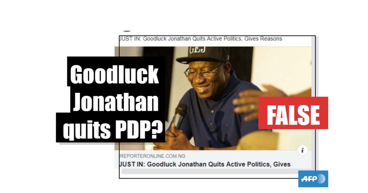 No, Nigerian ex-president Goodluck Jonathan has not quit the opposition PDP