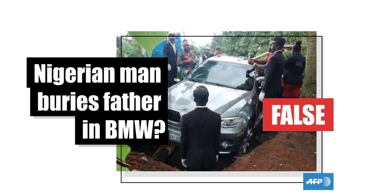 The earliest picture was posted by a Facebook user by the name Zevi Gins on June 10, 2018, and has been shared by over 47,000 people. The picture was captioned “NIGERIAN MAN AZUBUIKE BURIES HIS LOVELY FATHER WITH A BRAND NEW BMW WORTH N32MILLION NAIRA, IN HIS FATHER'S VILLAGE WHERE HE WAS LIVING IN IHIALA LGA, MBOSI, ANAMBRA STATE”. Many of the 4,800 comments suggested that readers believed the post to be true. We've archived the post here.