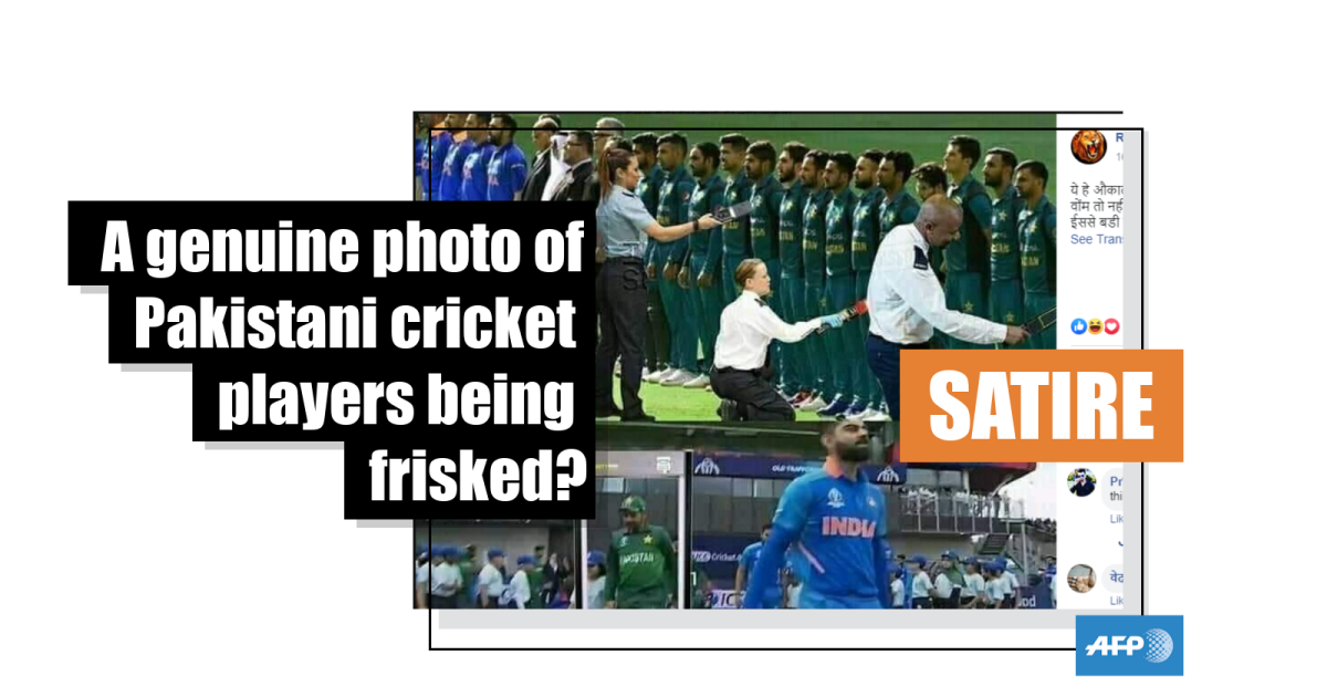 No, this is not a genuine photo of Pakistani cricket players being frisked ahead of a match against India