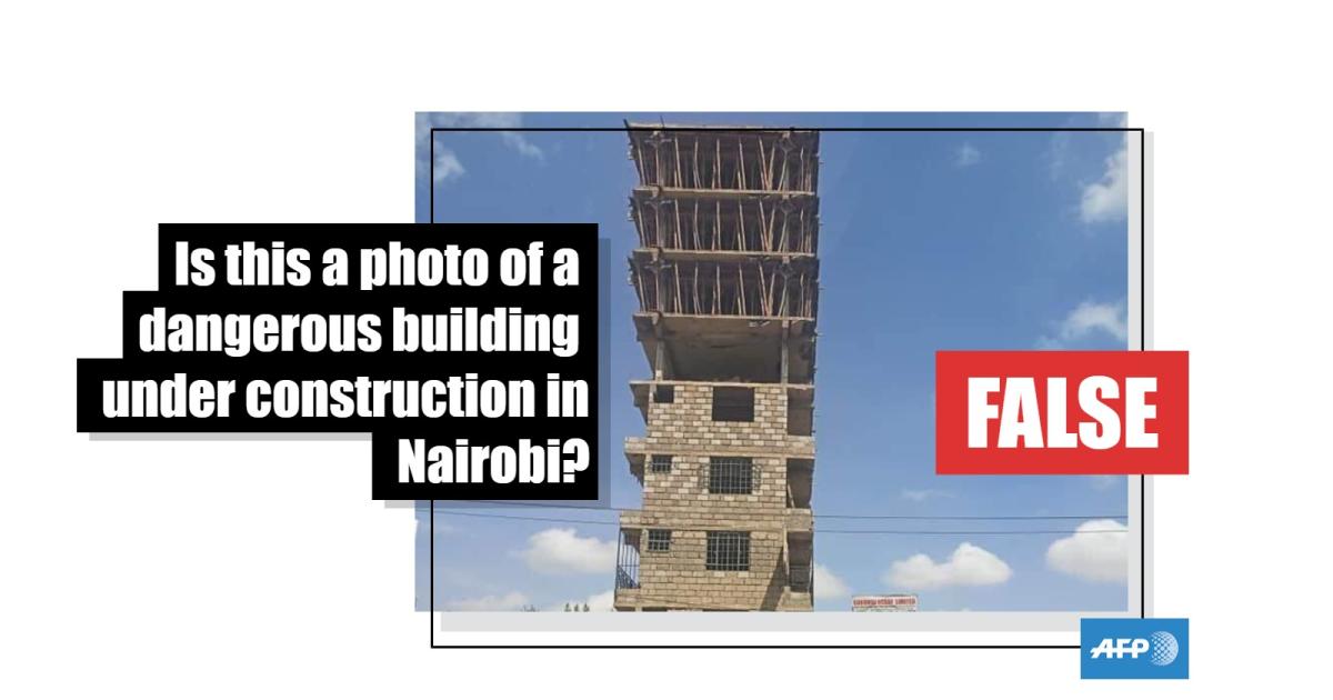 The manipulated photo showed the alleged nine-storey structure almost tipping over. The caption described the building, located in Nairobi’s eastern Kayole neighbourhood, as unsafe and structurally unsound.