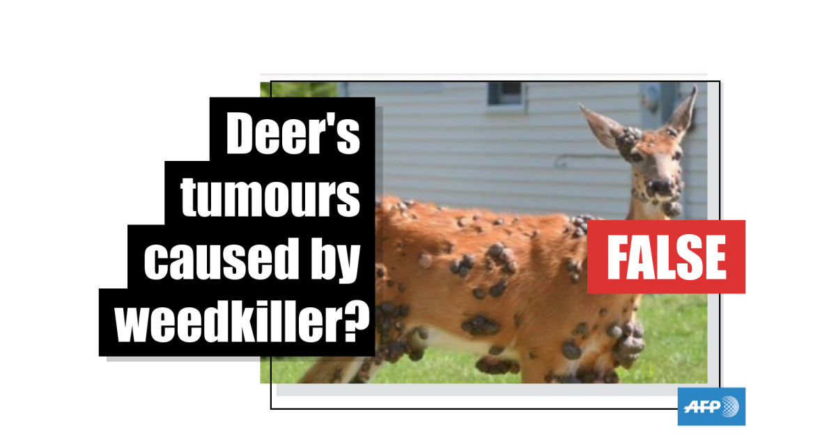 The caption, translated to English by AFP’s Tokyo bureau, says: “A deer covered with tumours after eating plants sprayed with Monsanto's Roundup. It appears there are quite a lot,” meaning that there seem to be many deer with the same condition.