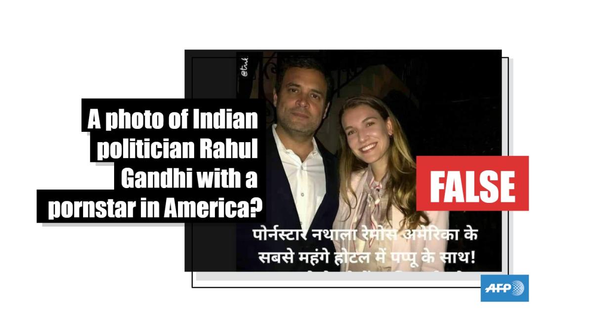 No, this is not a photo of Indian politician Rahul Gandhi meeting a pornstar in the USA