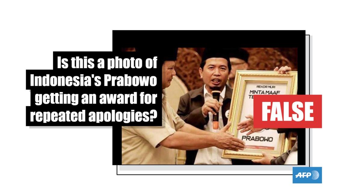 No, this is not a photo of Indonesian presidential candidate Prabowo Subianto accepting an award for repeatedly apologising