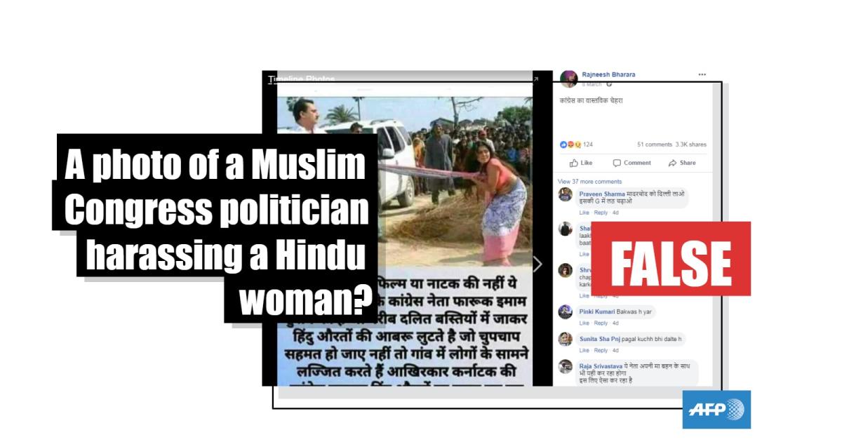 No, this not a photo of a Muslim politician from the Indian National Congress party harassing a Hindu woman