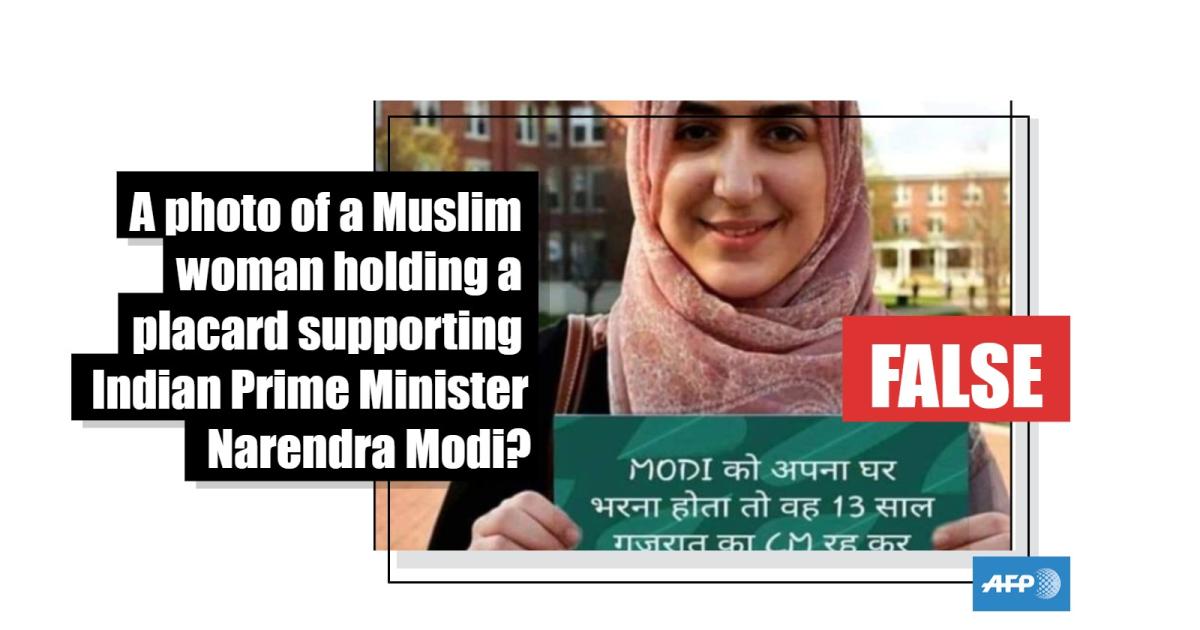 No, this is not a photo of a Muslim woman holding a placard in support of Indian Prime Minister Narendra Modi