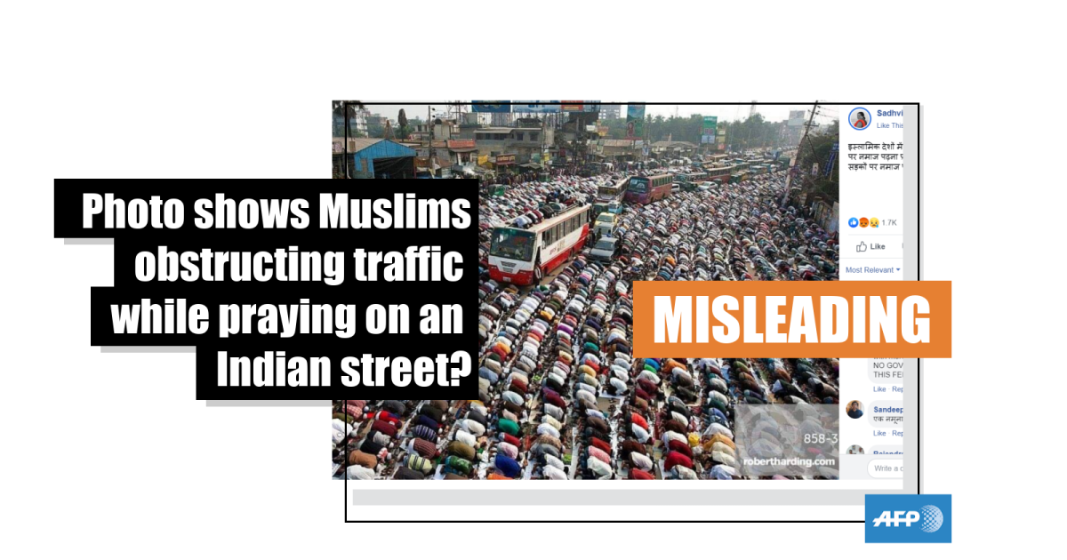 The post's caption is misleading; the photo actually shows Muslims gathered on a street in Bangladesh for an annual religious ceremony.