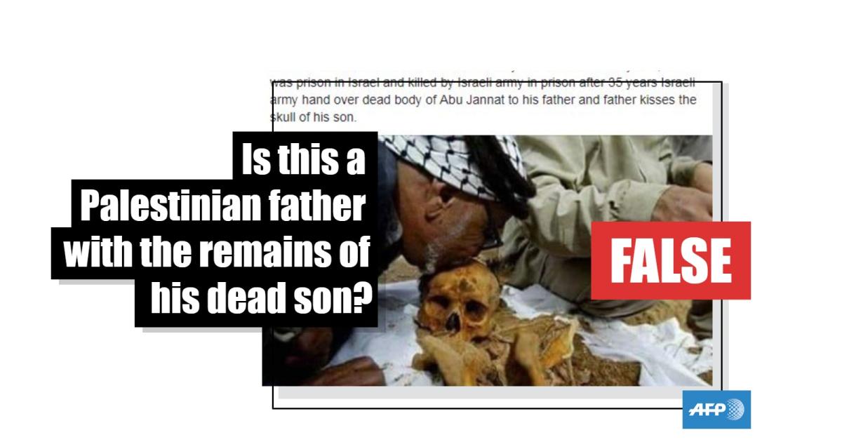 No, this is not a photo of a Palestinian father kissing the skull of his dead son