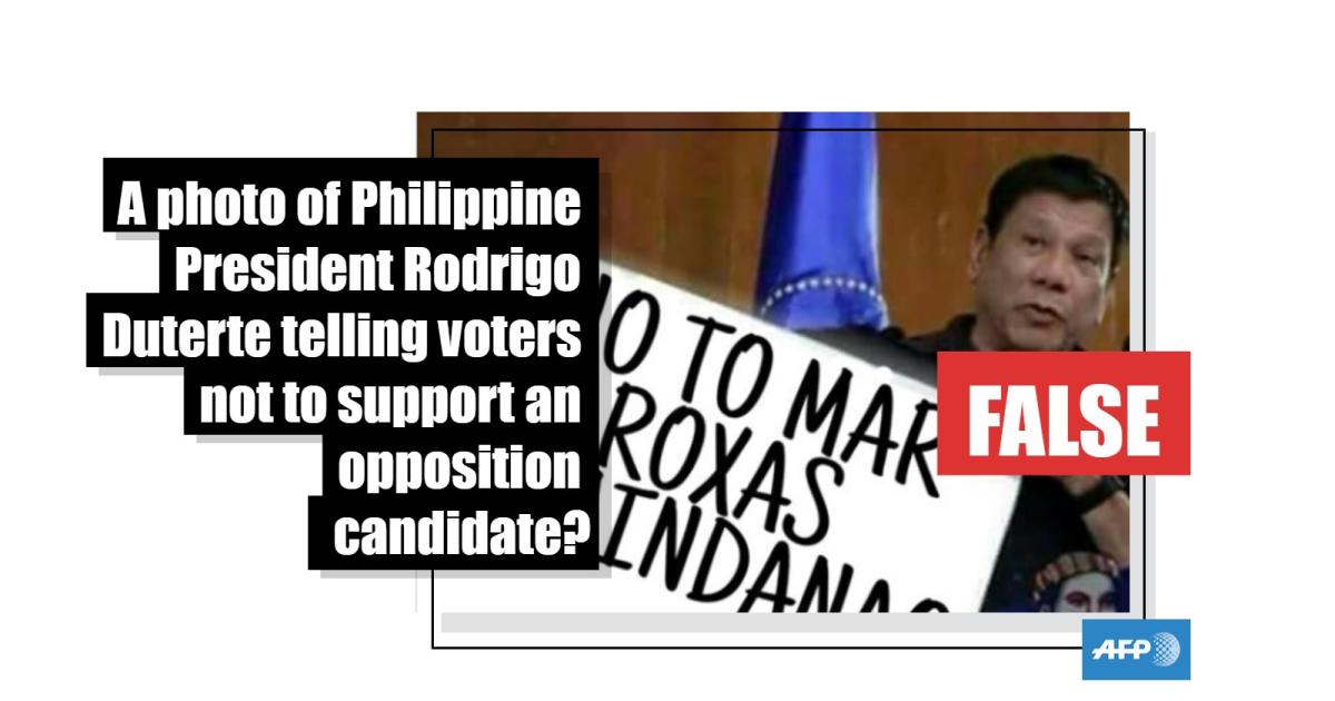 No, this is not a photo of Philippine President Rodrigo Duterte urging voters to reject an opposition candidate