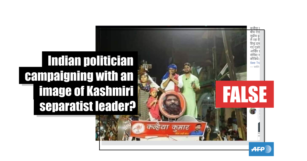 The Hindi language caption alongside the photo in the misleading post translates to English as: “Kanhaiya is doing roadshow and seeking votes with an image of Afzal Guru, who is convicted for terrorism by the Supreme Court. Why isn't the election commission is taking notice of this? Think what is his mentality? Who are the Hindus supporting his and what are they thinking? Are we so forsaken that we will vote for a terror-supporter? In what direction we are thinking? Think, understand and then take a right decision to vote in the interest of the country.”