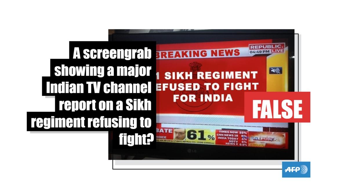 No, this is not a screengrab showing a major Indian TV channel report on a Sikh regiment refusing to fight