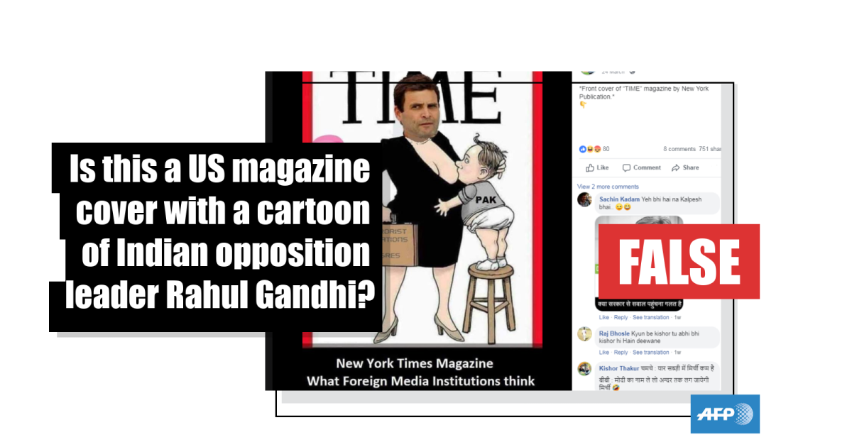 No, this is not a US magazine cover featuring a cartoon of Indian opposition leader Gandhi